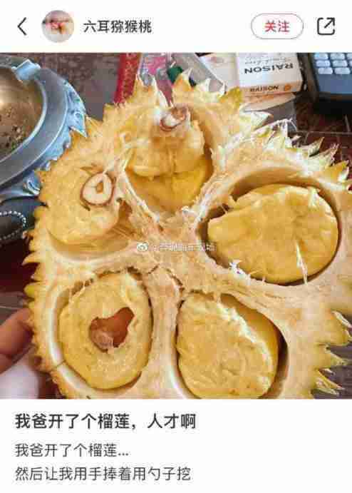 网友爸爸用刀开了个榴莲。