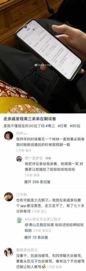 走亲戚发现弟弟在刷题。