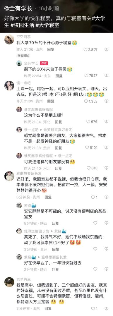大学的快乐程度和寝室有关。