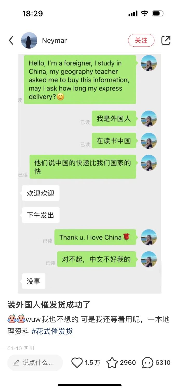 装外国人催货成功。