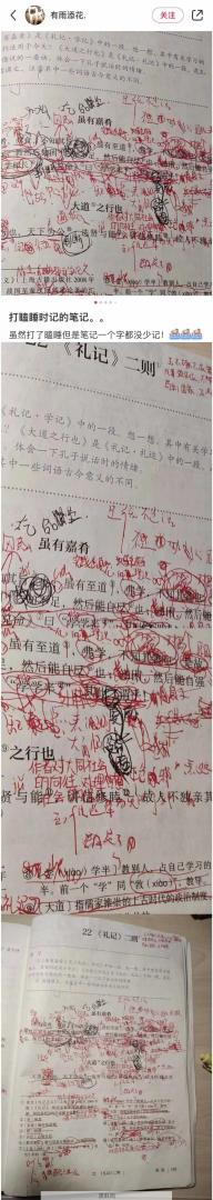 打瞌睡也不忘记笔记。