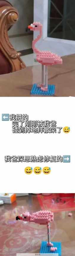 爸爸把我的火烈鸟积木摔地上后。