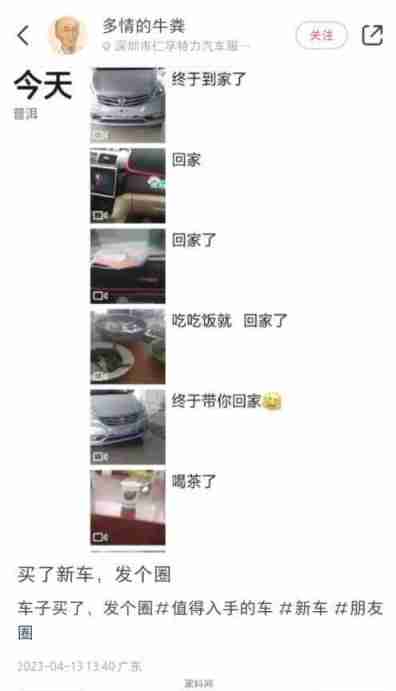 提了新车的朋友圈。