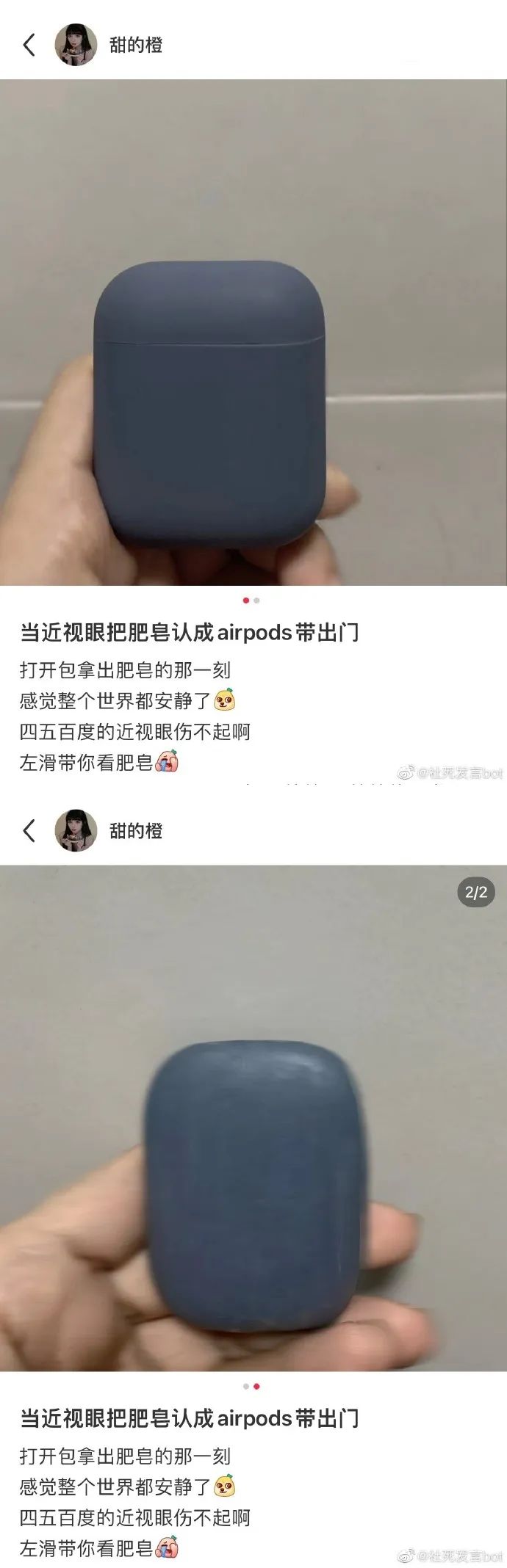 当近视眼把肥皂认成AirPods带出门。