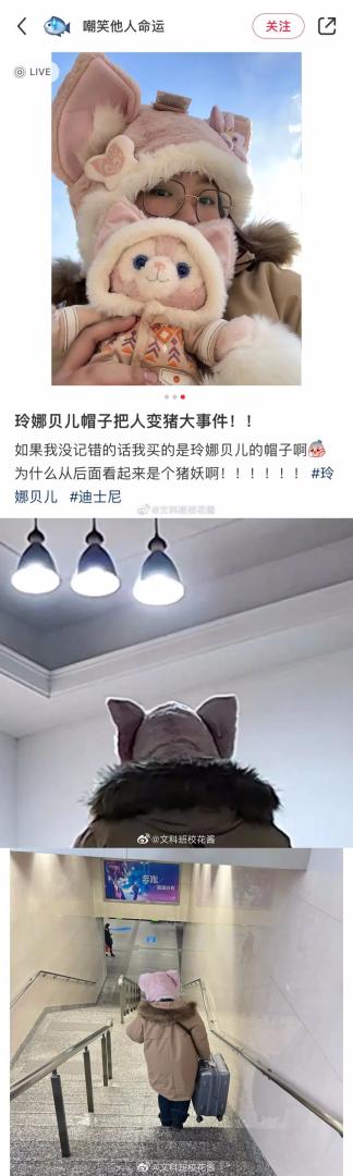 别从背后看玲娜贝儿的帽子。