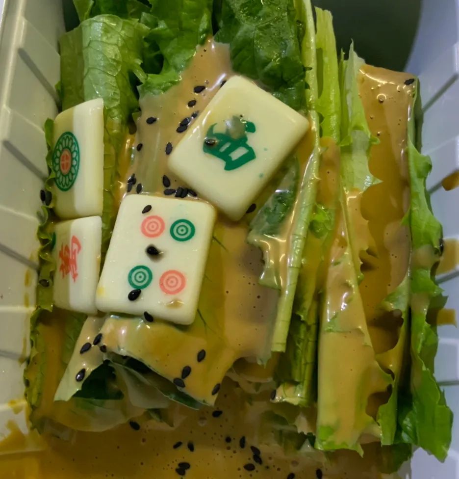 我点的麻酱生菜里真的有麻将,结果咬了一口发现居然是巧克力?!