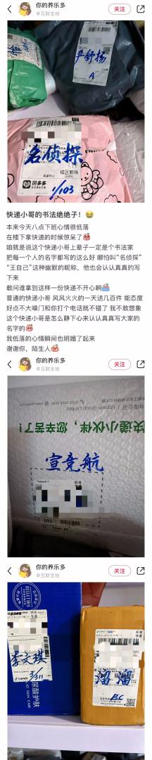 这是我见过写字最好看的快递小哥了。