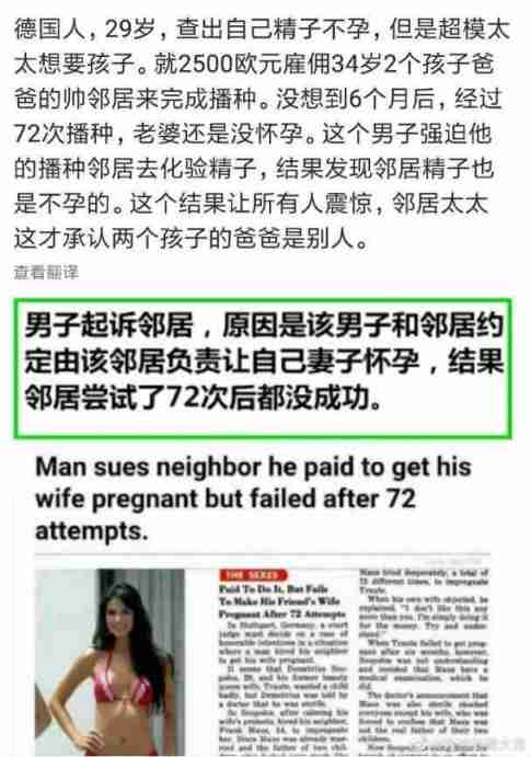 男子雇邻居和超模老婆上床借种,