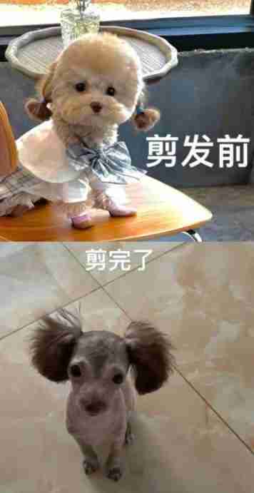 狗狗美容前后差距有多大。