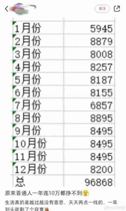 原来普通人一年连10万都挣不到 。