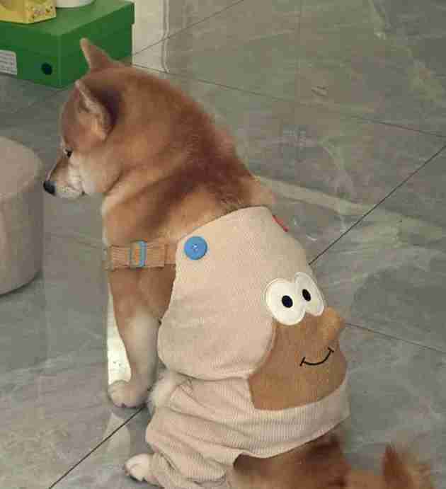 原来小狗穿背带裤也滑肩。