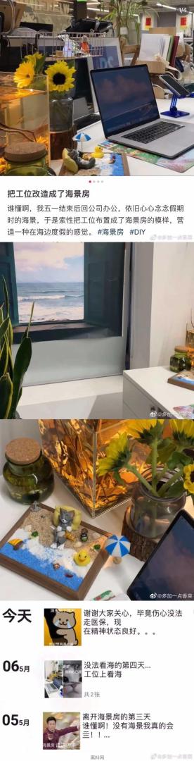 把工位改造成了海景房。