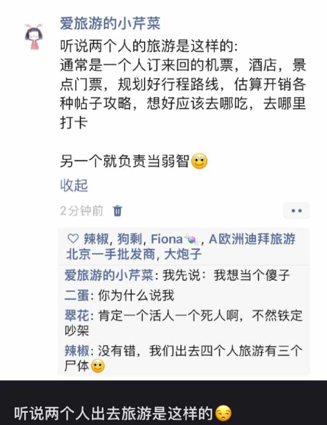 两个人的旅游是这样的。