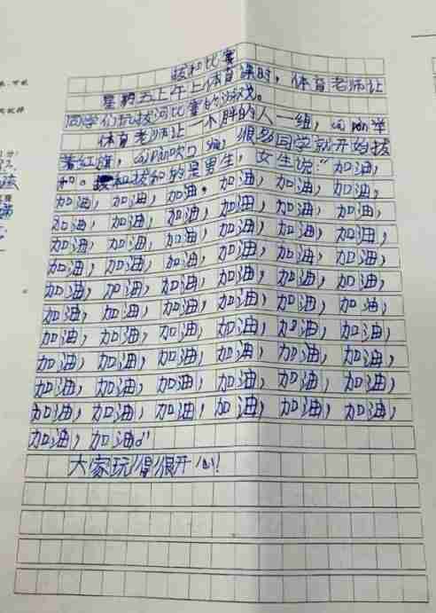 体育课光喊加油就把字数加满了。