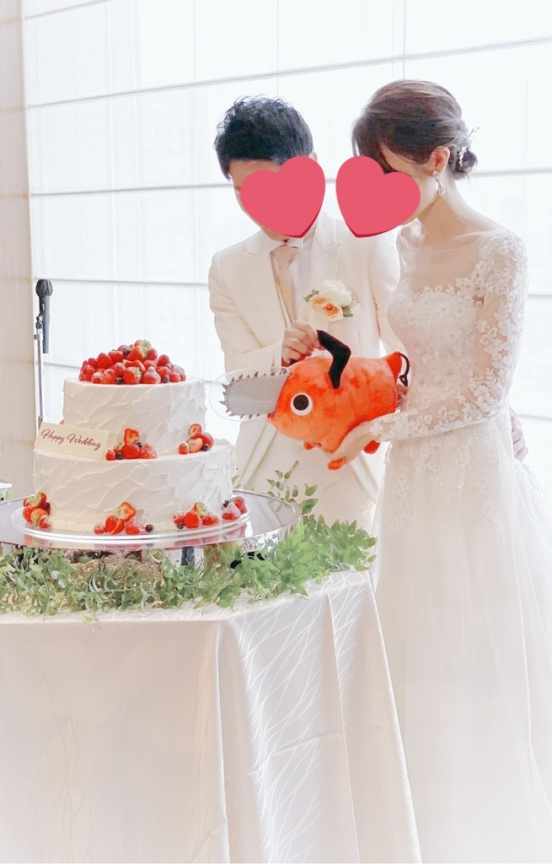 这是他们婚礼时的切蛋糕仪式。