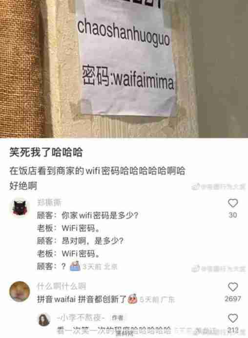 商家的wifi密码。