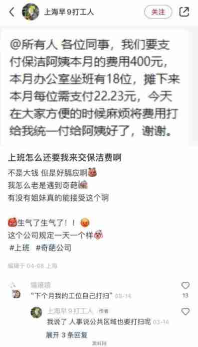 公司要求保洁费让员工分摊。