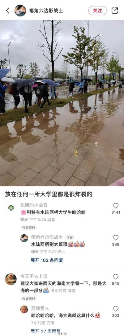 下雨天水陆两栖大学生。