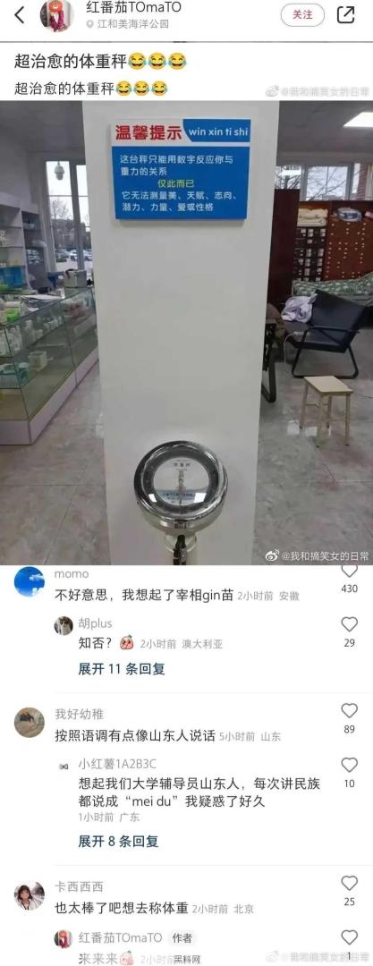 被体重秤的温馨提示治愈了。