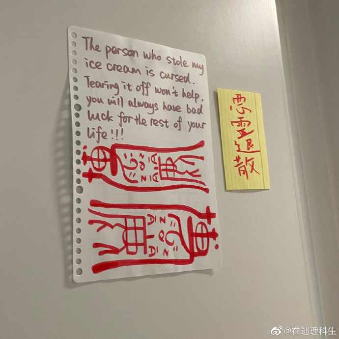 国外室友偷东西了悄悄贴了两张符 ​​​,哈哈哈神秘的东方玄学