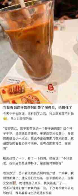 当我看到这杯奶茶时叫住了服务员。