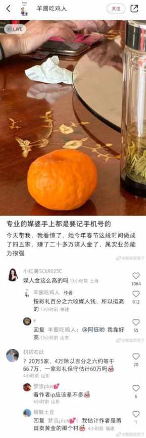 没想到做媒婆那么赚钱。